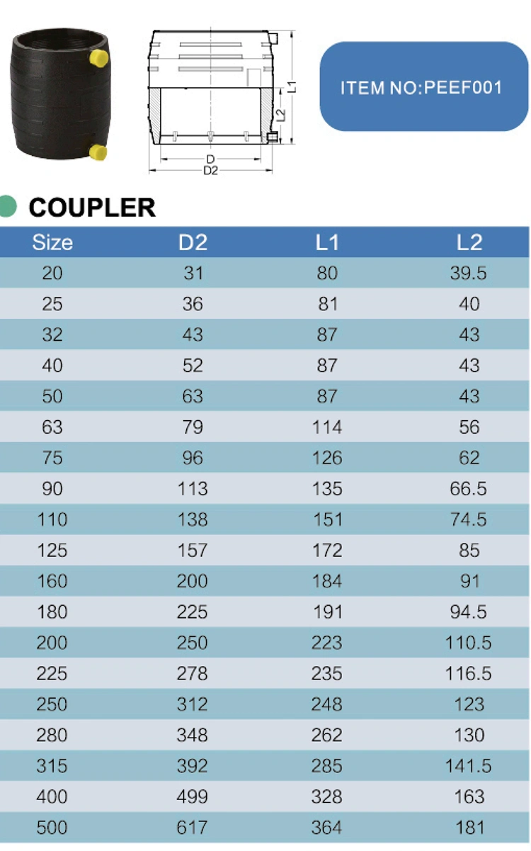 Coupler HDPE – Măng sông / Nối thẳng Electrofusion Fitting (Model: PEEF001)